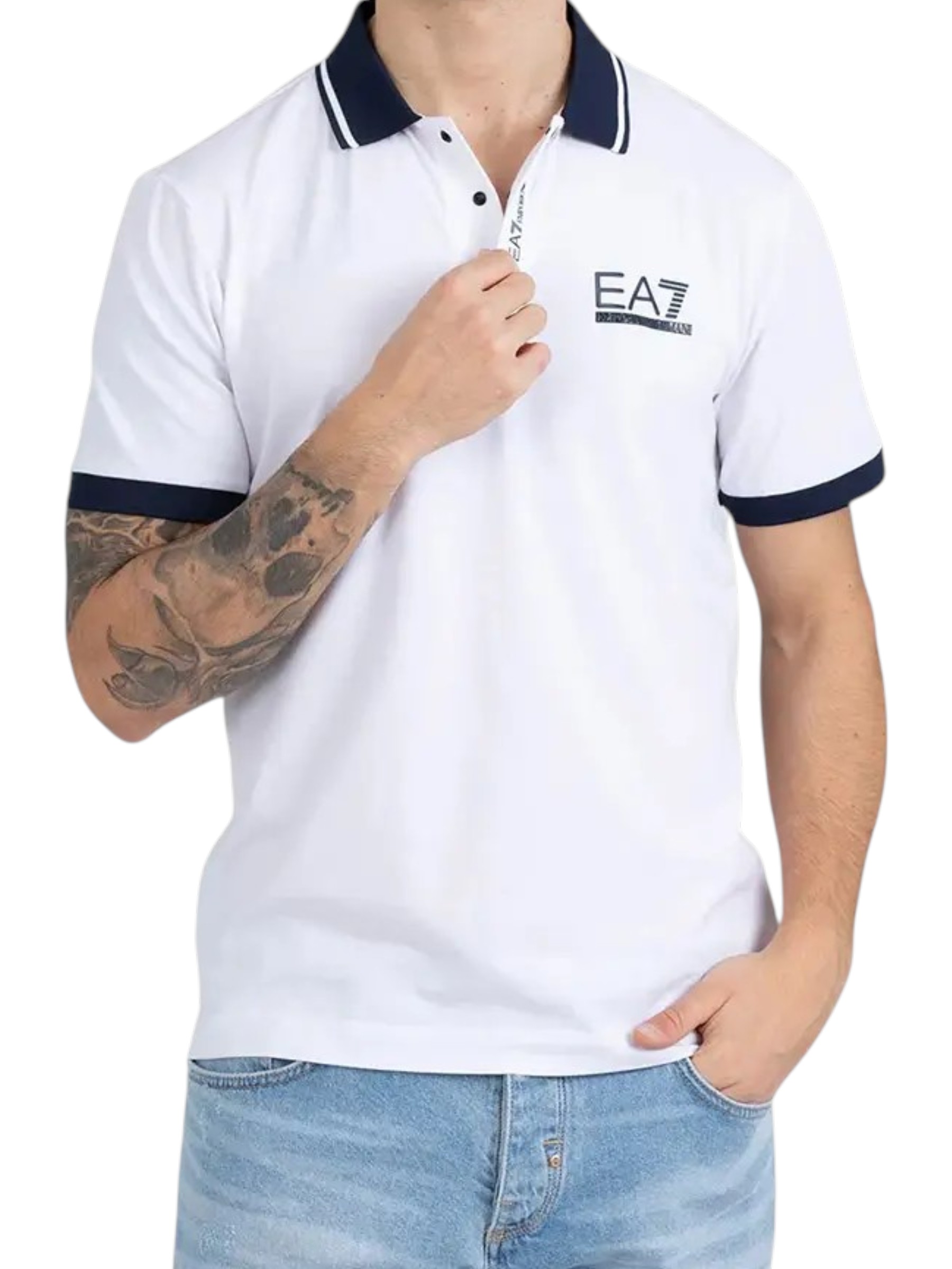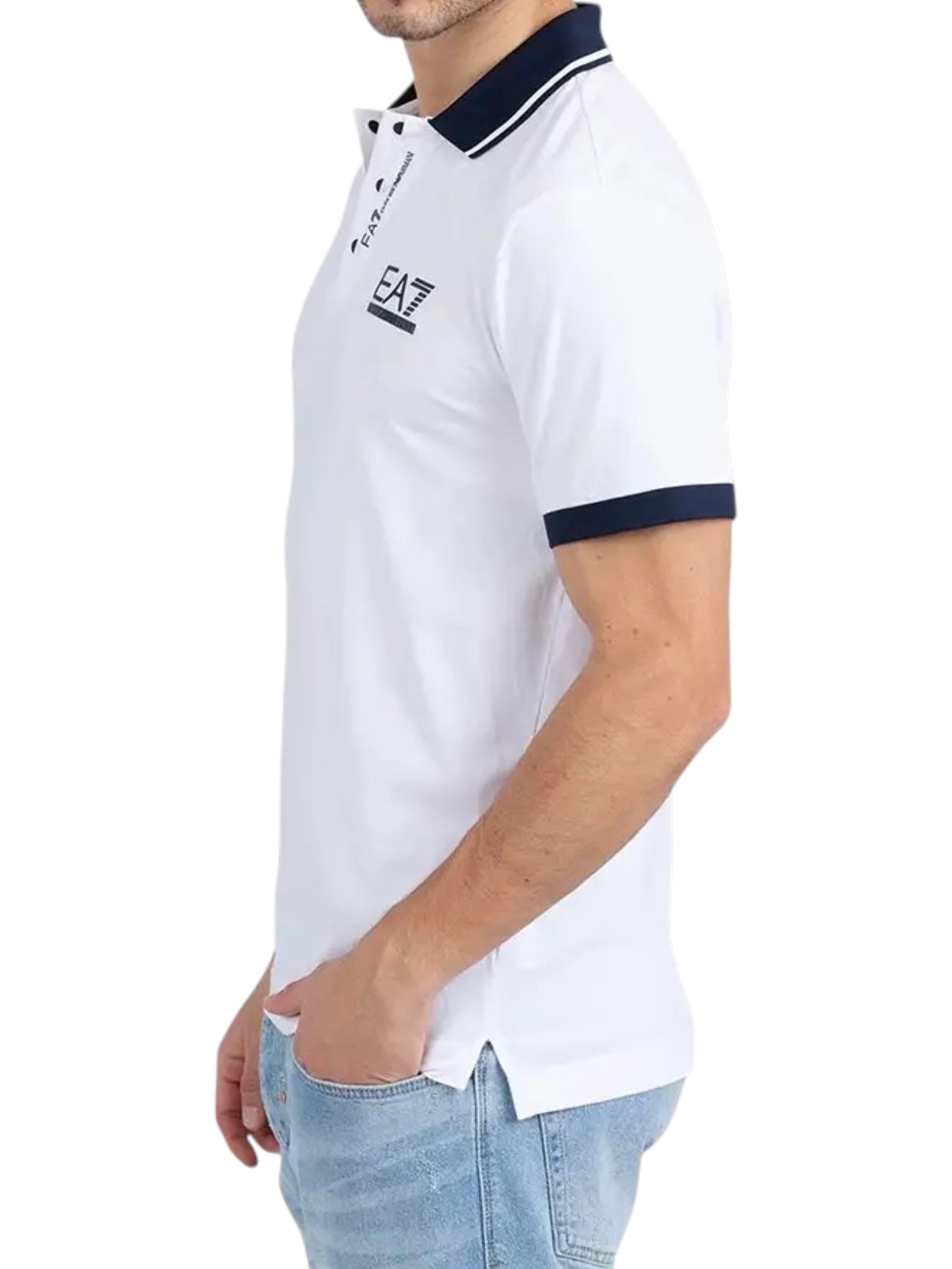 Emporio Armani EA7 – Polo uomo in cotone bianco e blu – 3XL