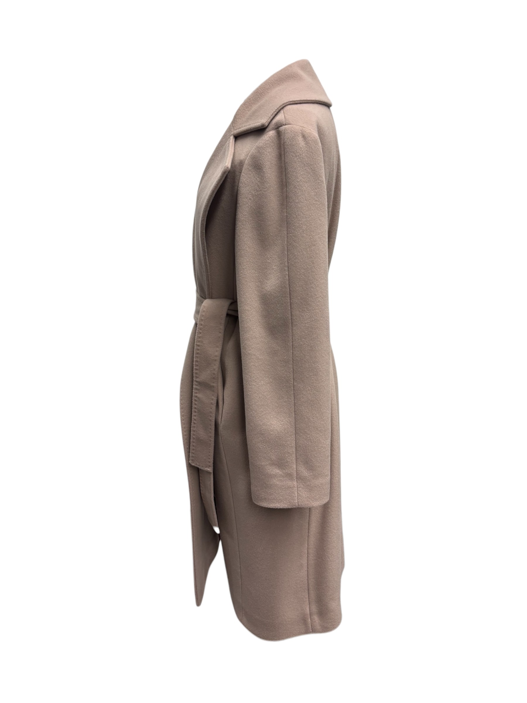 Cappotto beige modello Barbara, in misto lana e cashmere, rifinito a mano Made in Italy.