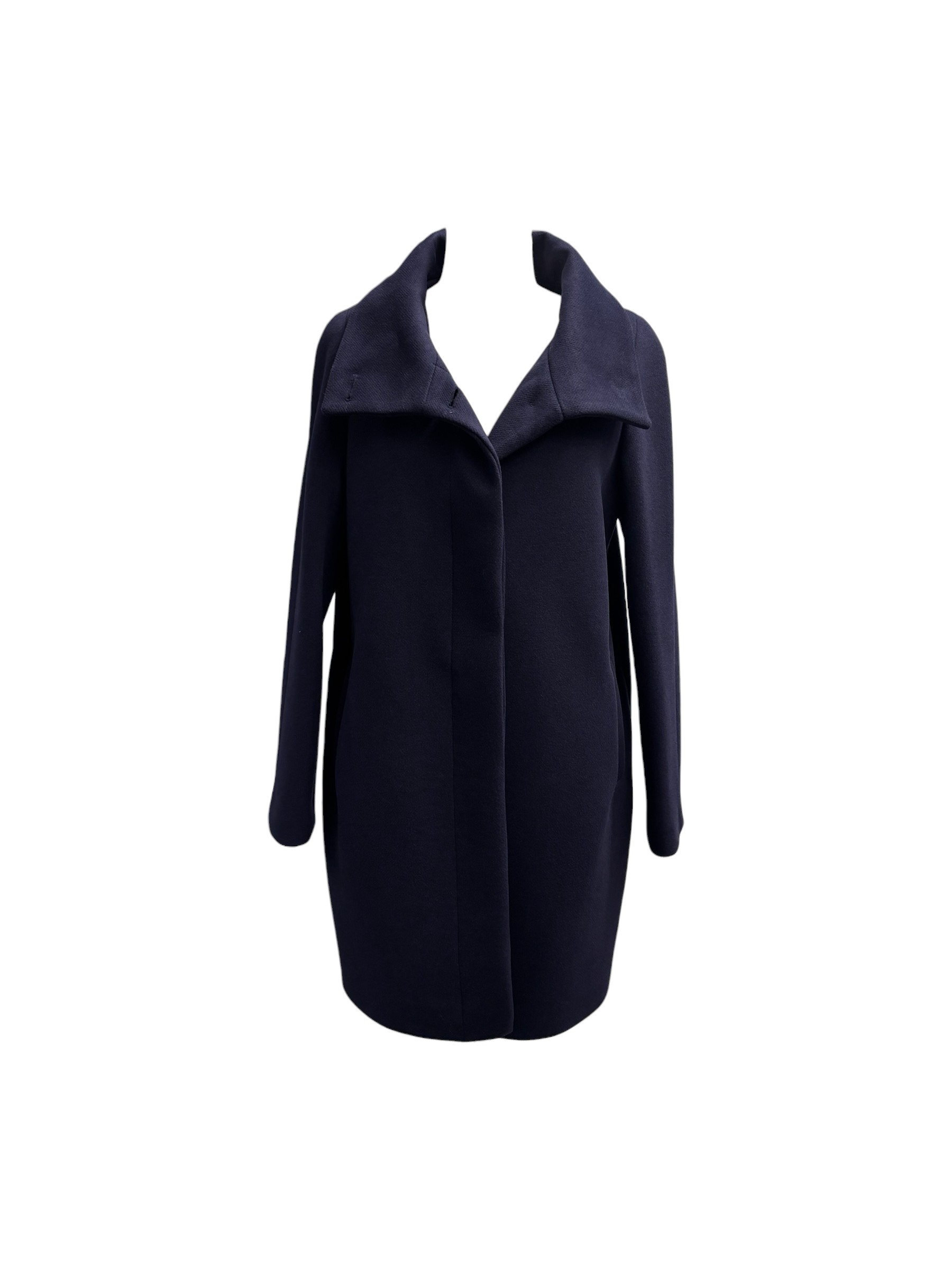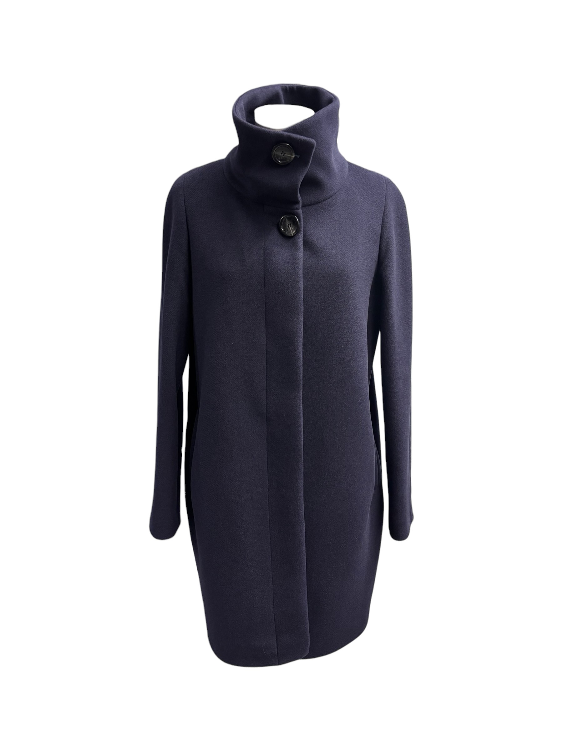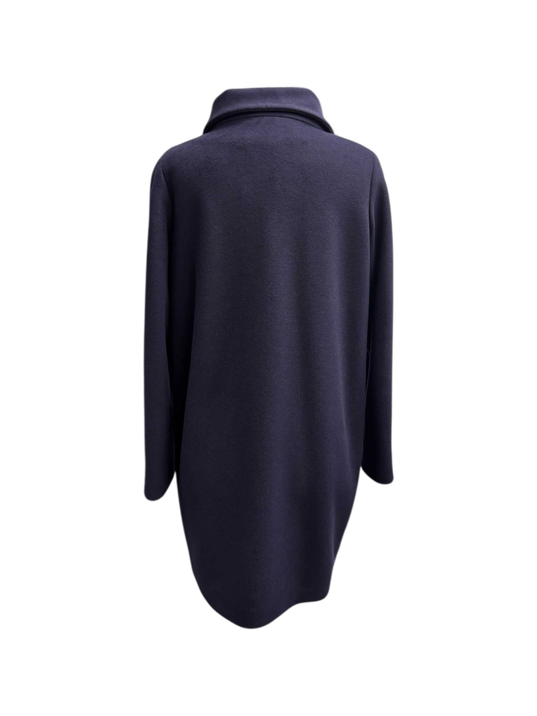 Realizzato con linee pulite e una silhouette femminile. Il design minimal è valorizzato dal collo alto strutturato, indossabile anche aperto per un look più morbido e raffinato. La chiusura nascosta con bottoni garantisce un’estetica essenziale e sofisticata. Vestibilità regular.