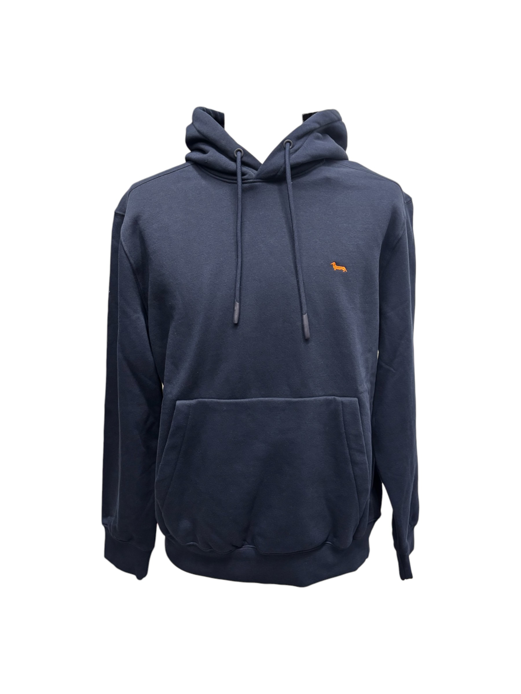 Realizzata in morbido cotone di alta qualità. Iconico bassotto ricamato a contrasto sul petto in colore arancione. Pratica tasca a marsupio sul davanti e interno felpato.