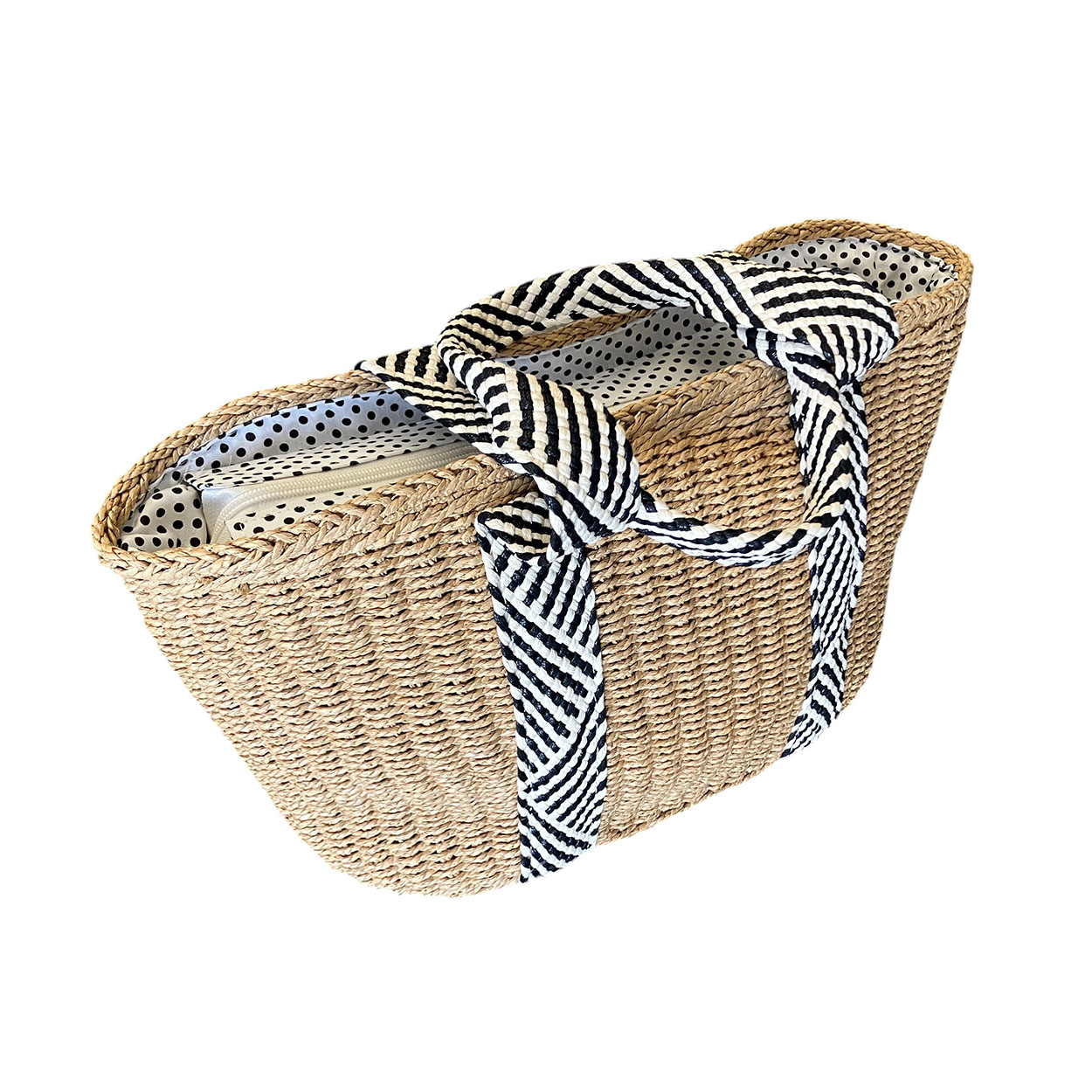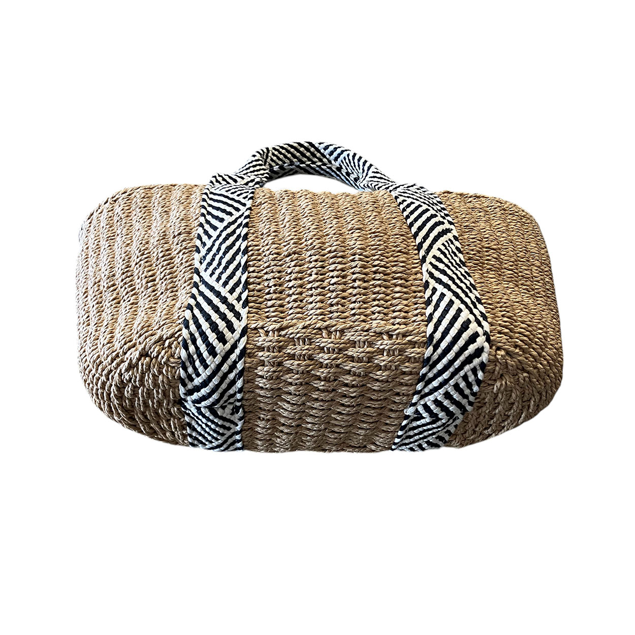 Irene – Borsa a spalla in paglia natural e tele intrecciata bianco nero MQ8257-1