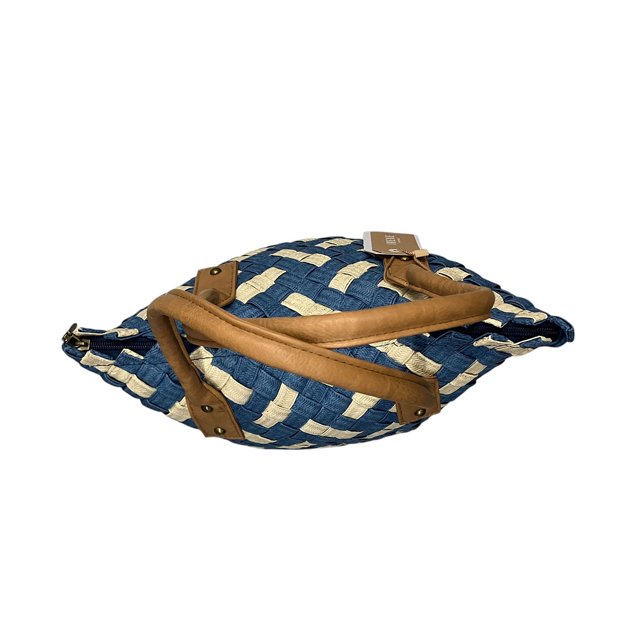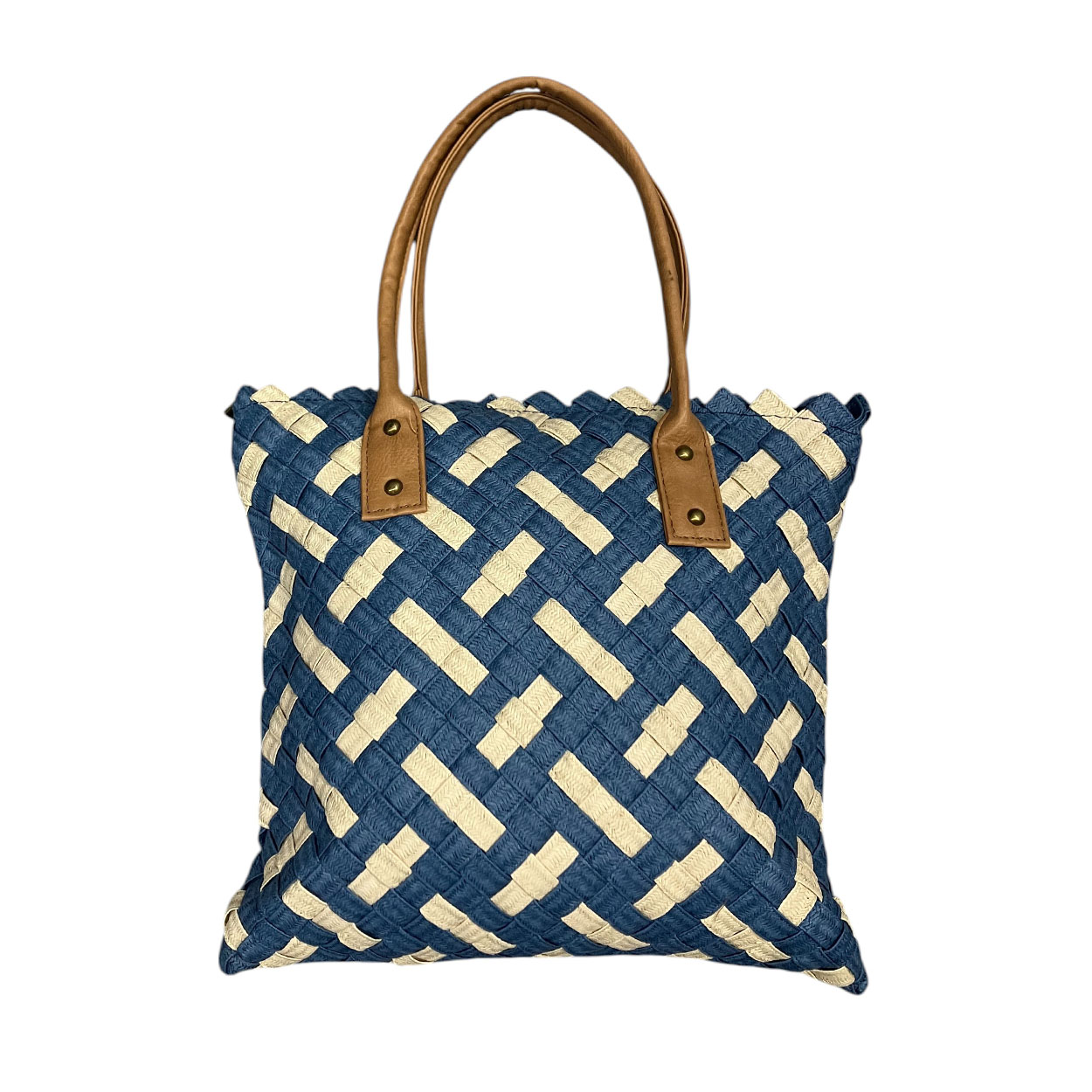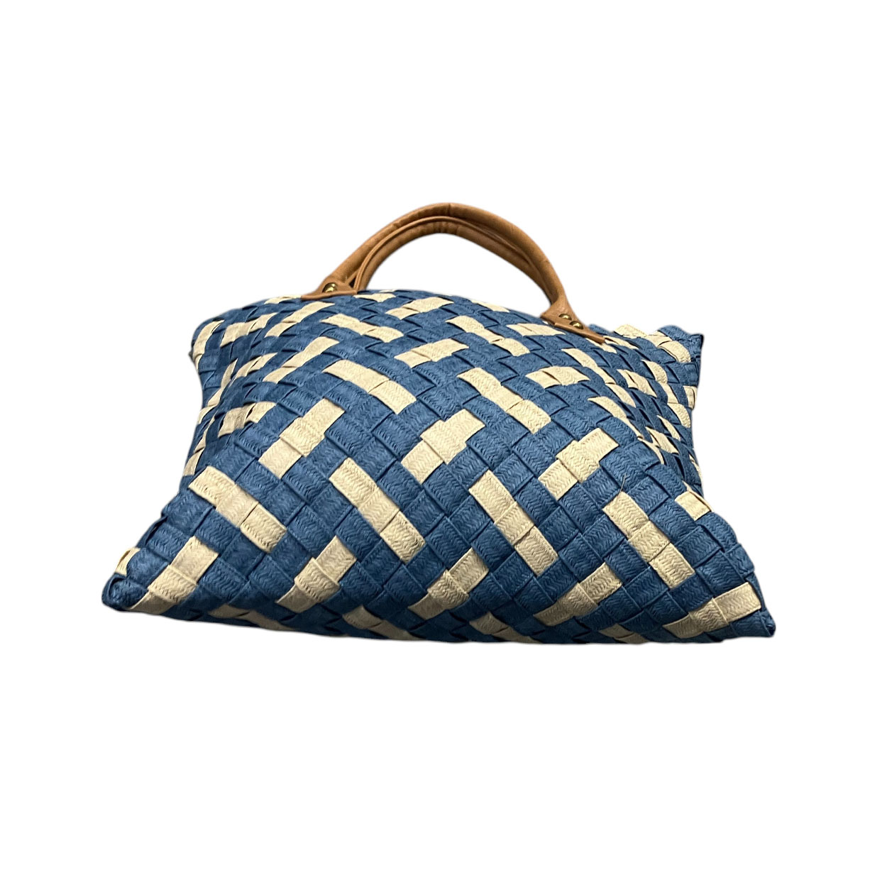 Irene – Borsa in paglia intrecciata blu panna e pelle vegana MQ8240