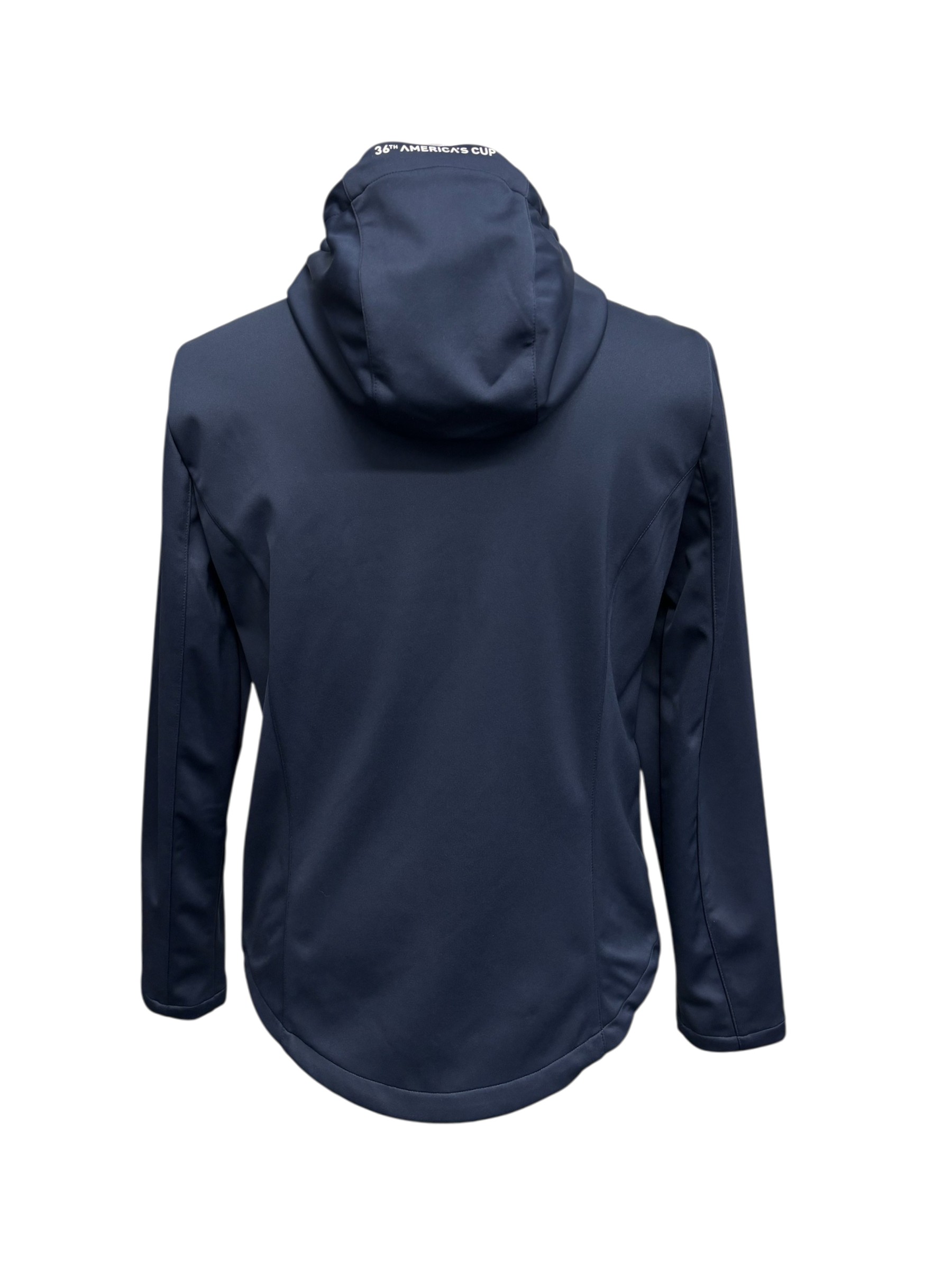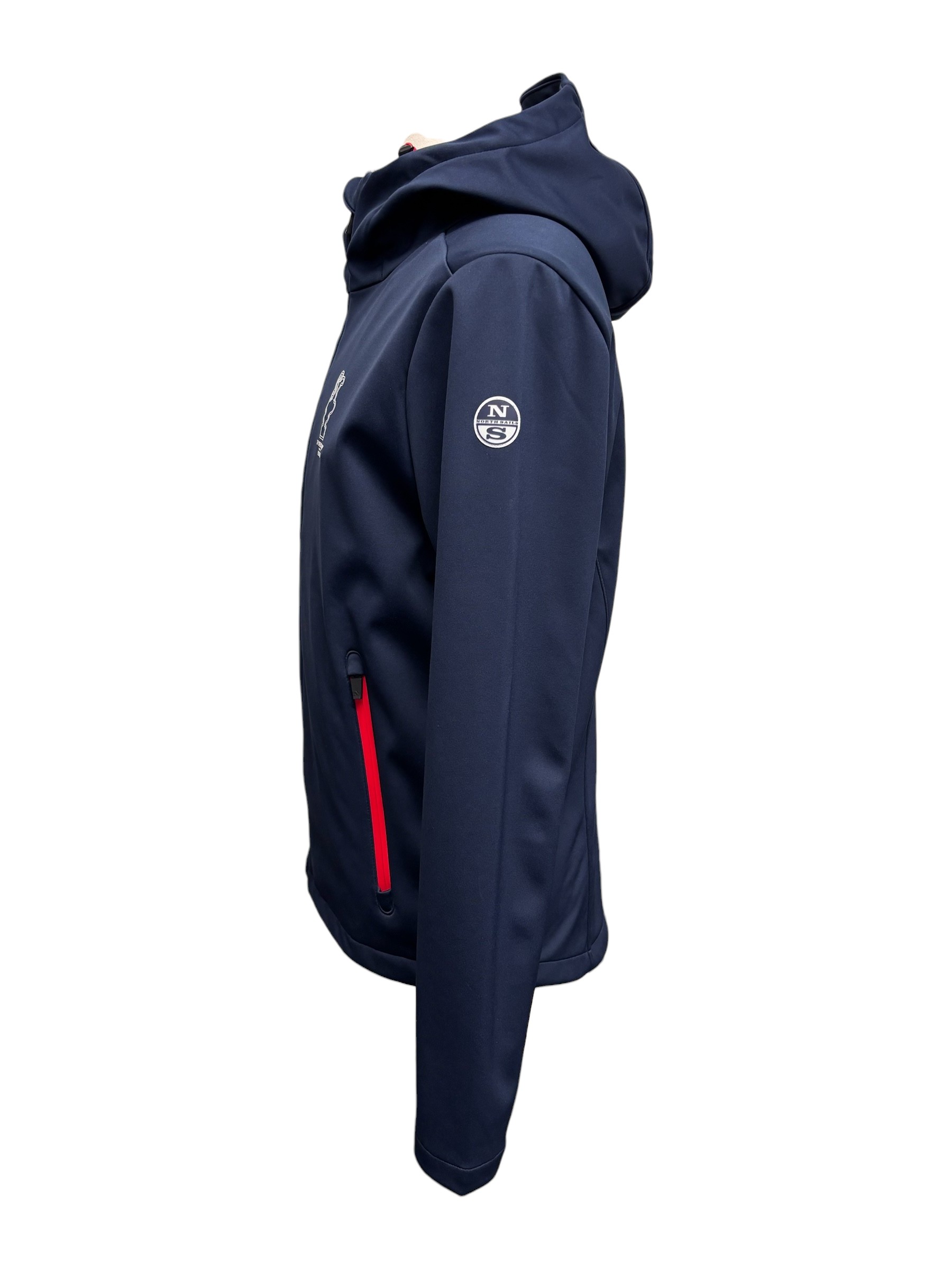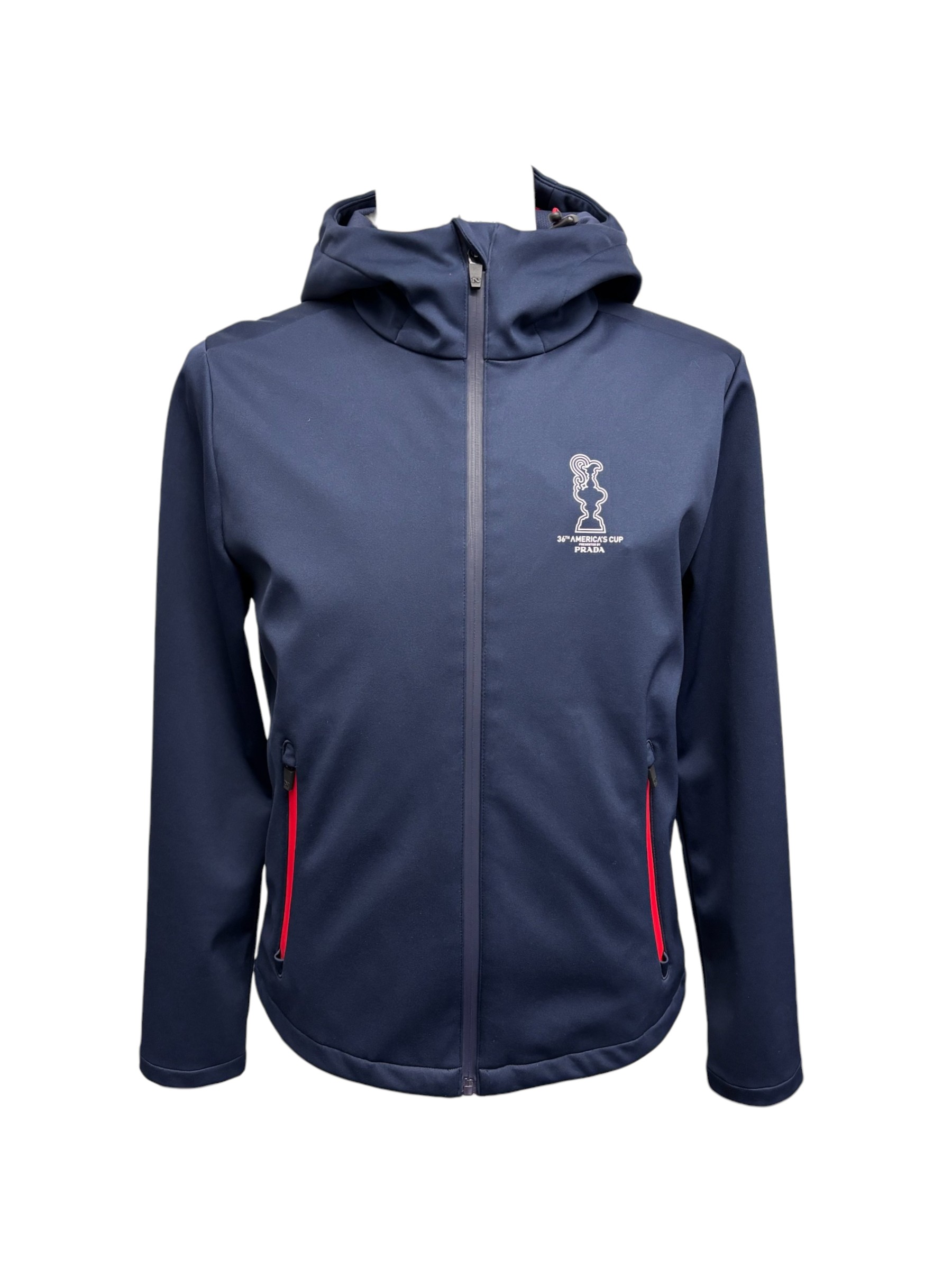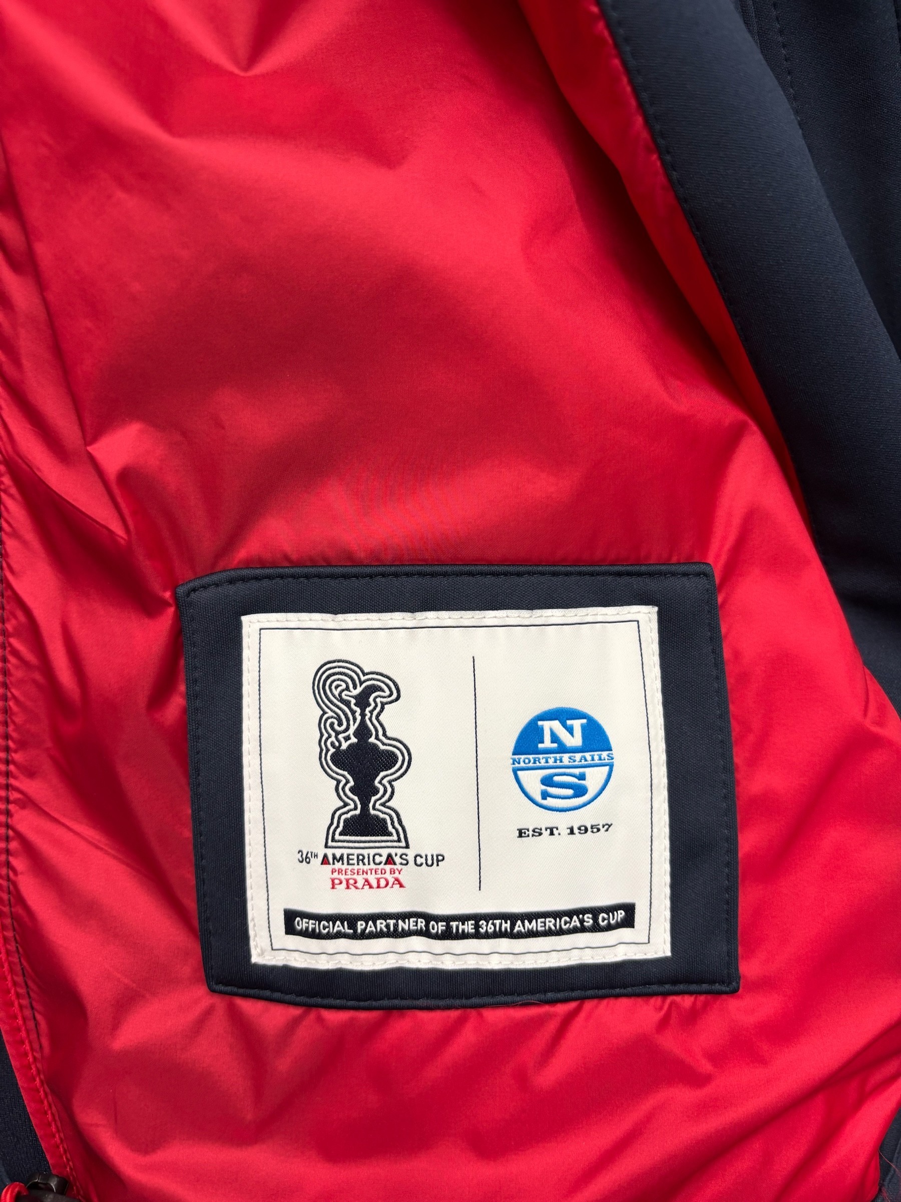 Giubbino in softshell tecnica da uomo, parte della collezione ufficiale creata da North Sails per la 36ª America’s Cup presented by Prada. Cappuccio fisso con scritte celebrative sulla parte superiore. Logo della 36ª America’s Cup e Prada stampato sul petto. Chiusura frontale con zip termosaldata e tasche con zip termosaldate. Fodera in un vivace rosso lucido con etichetta interna cucita che certifica la partnership ufficiale.