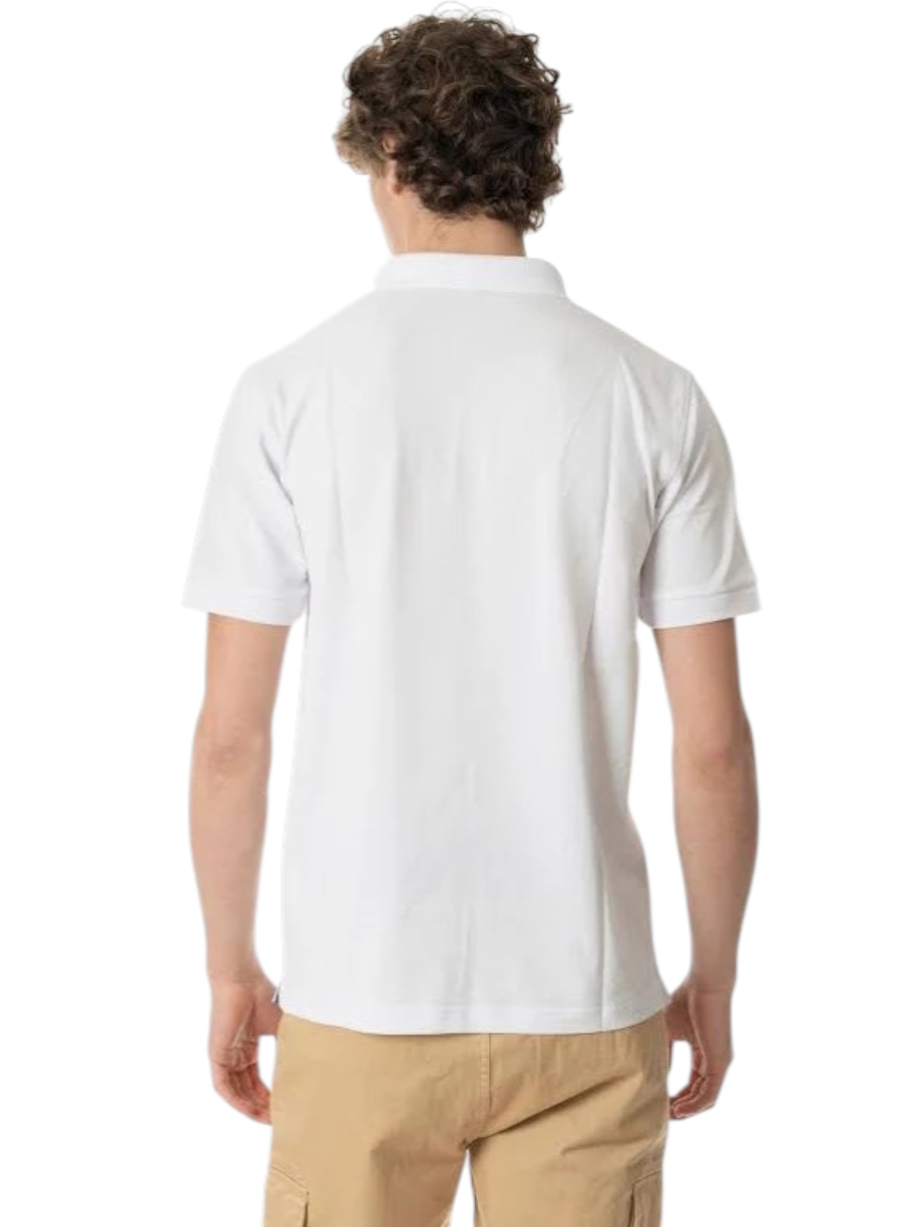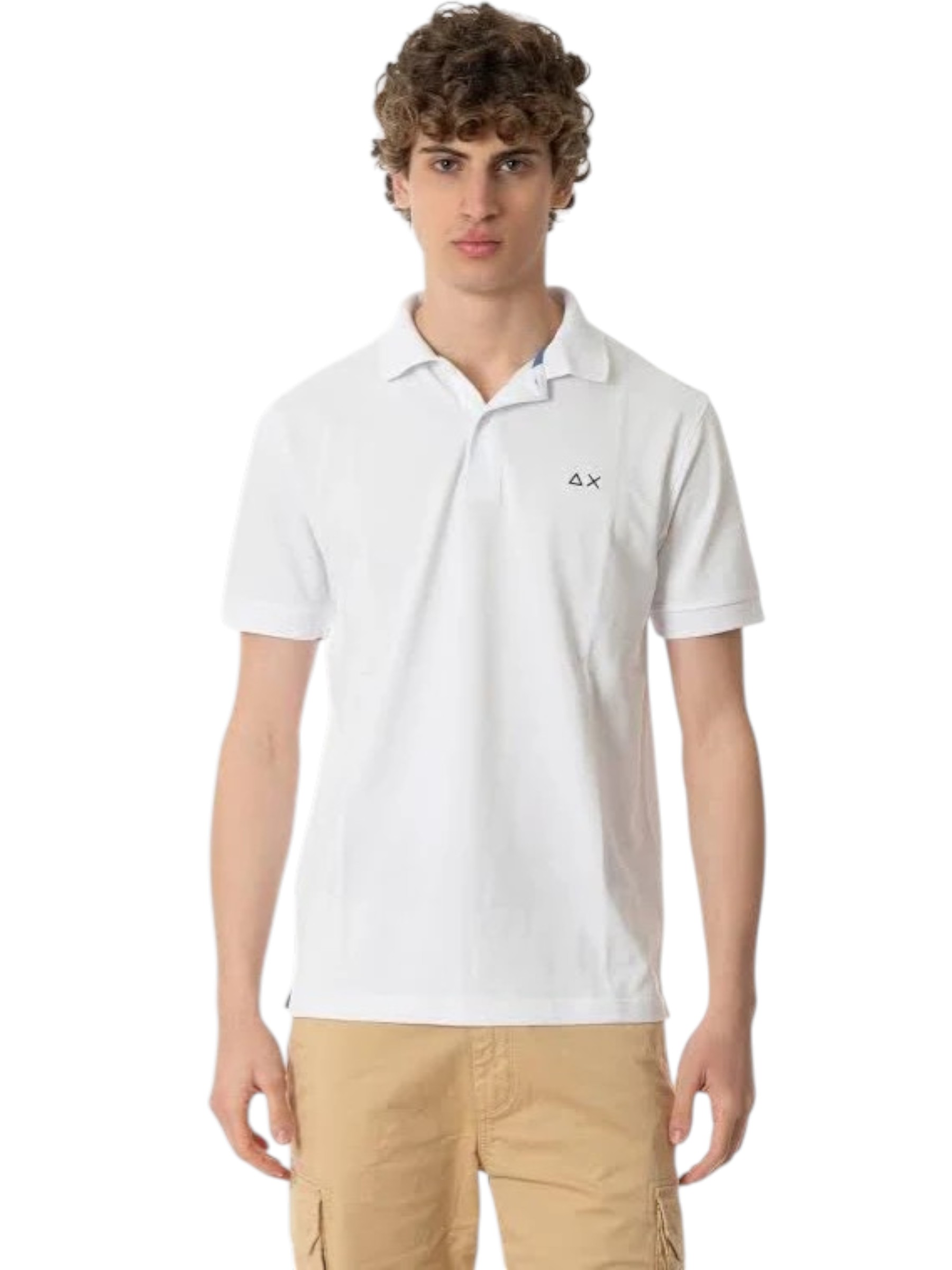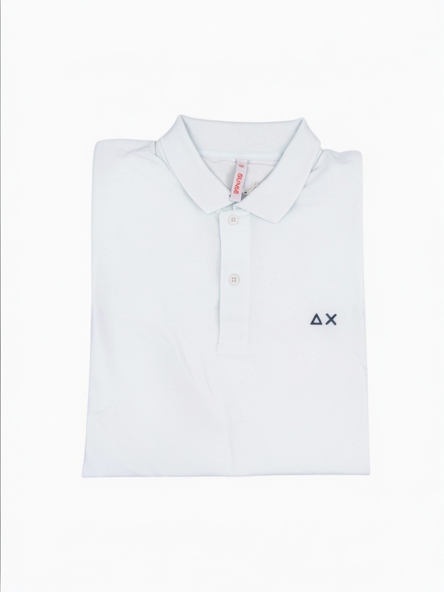 Polo in morbido cotone a tinta unita. Logo Sun68 ΔX ricamato in cotone in contrasto sulla sinistra del petto. Il colletto è lavorato a micro-costina ed ha una chiusura con due bottoni in tinta.