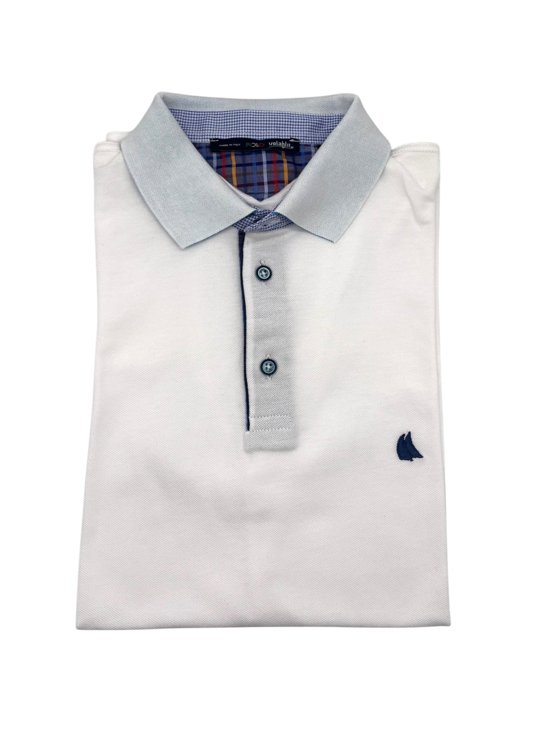 Vela Blu – Polo uomo in filo di Scozia bianco – S