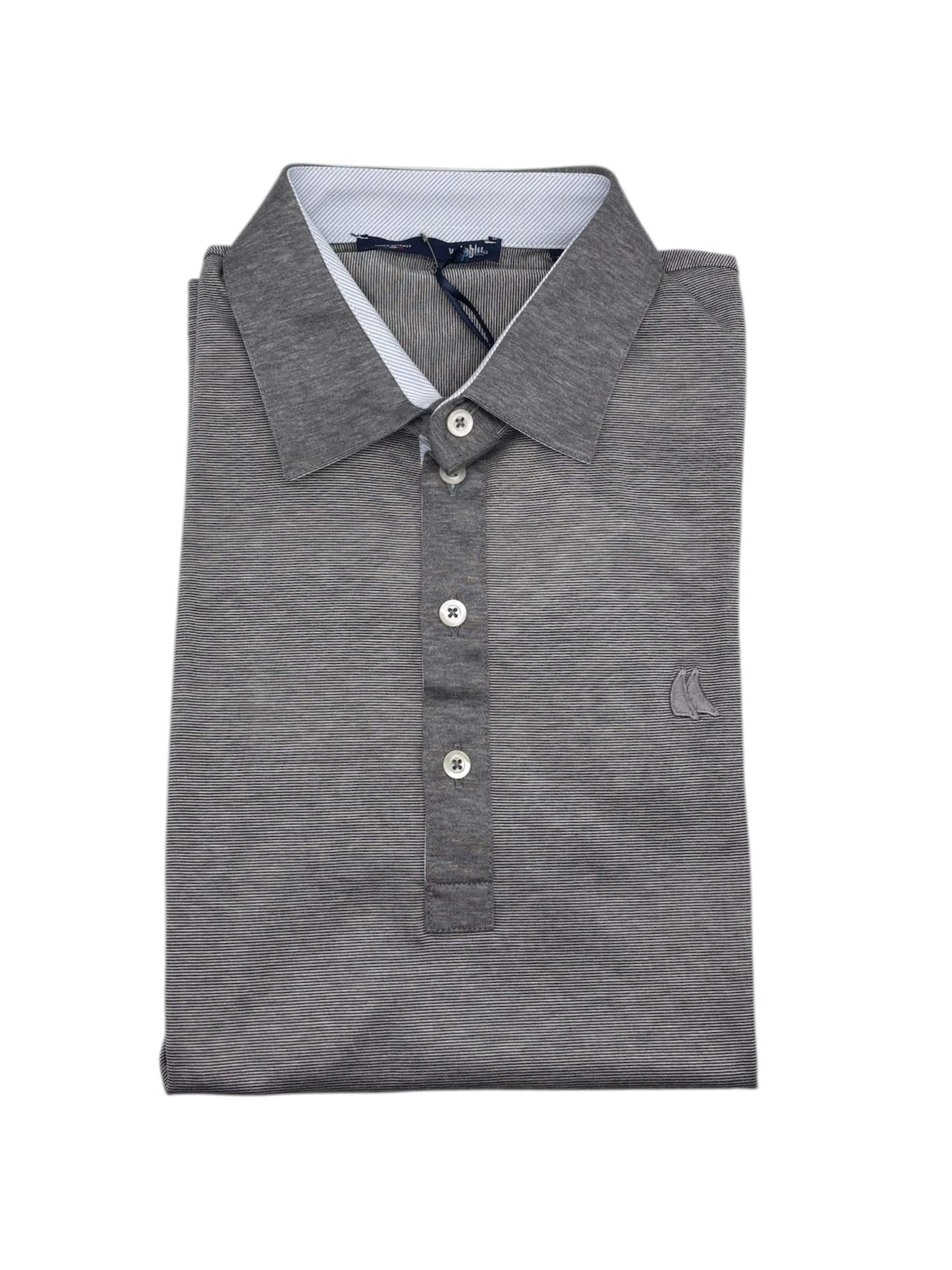 Vela Blu – Polo uomo in filo di Scozia microrigato grigio e bianco